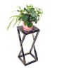 Plant platform stand measures 6.5" L x 6.5" W x 0.50" H. Black/Gold Metal legs measure 8.25" L x 8.25" W x 18.75" H. The cast metal square tube measures 0.75" L x 0.75" W.